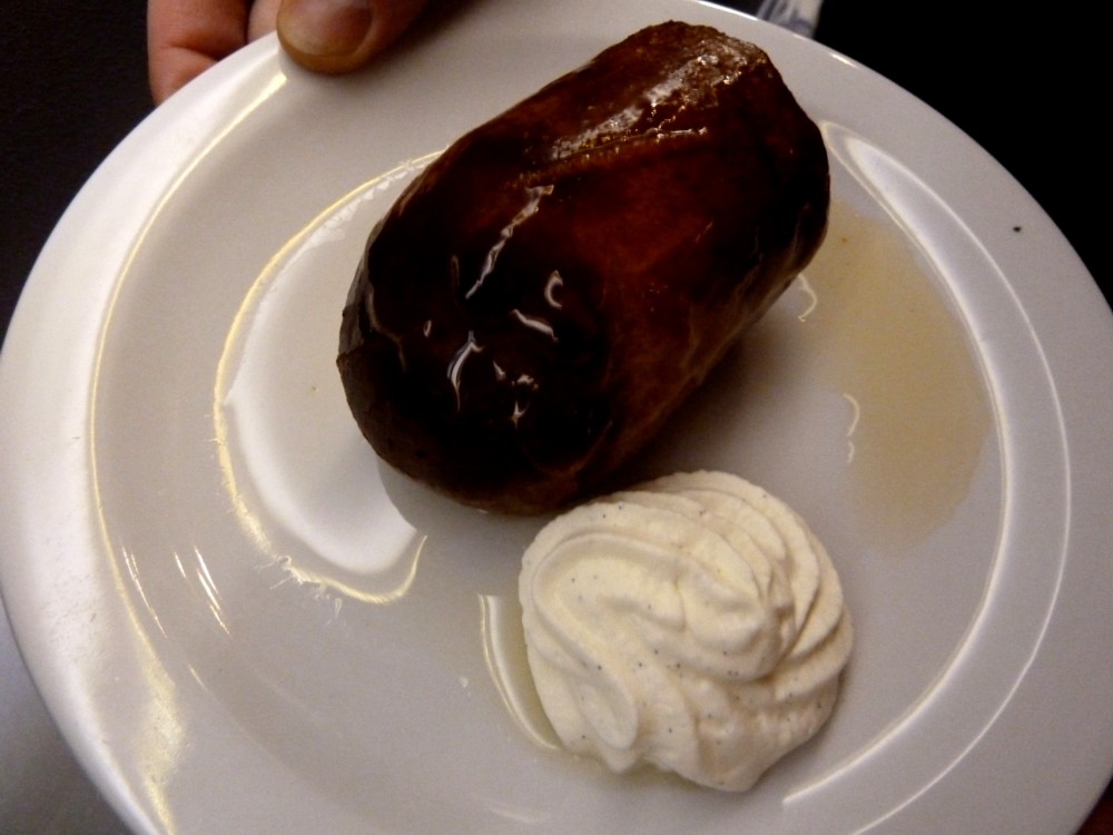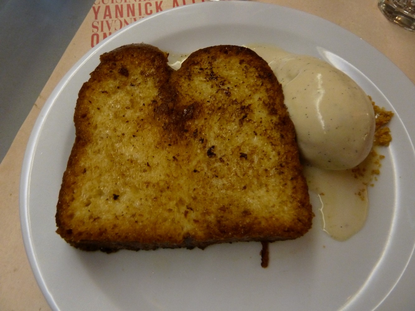 Une fois dans l’assiette: la déception est de taille. Aucune originalité. Rien qui ne surprenne ou transcendante les classiques. Servie froide, la brioche pain perdu est loin d’être revisitée, alors que le baba n’a d’original que le miel béton – issu des ruches parisiennes – qui le berce. Tout est douloureusement classique et manque de générosité.
