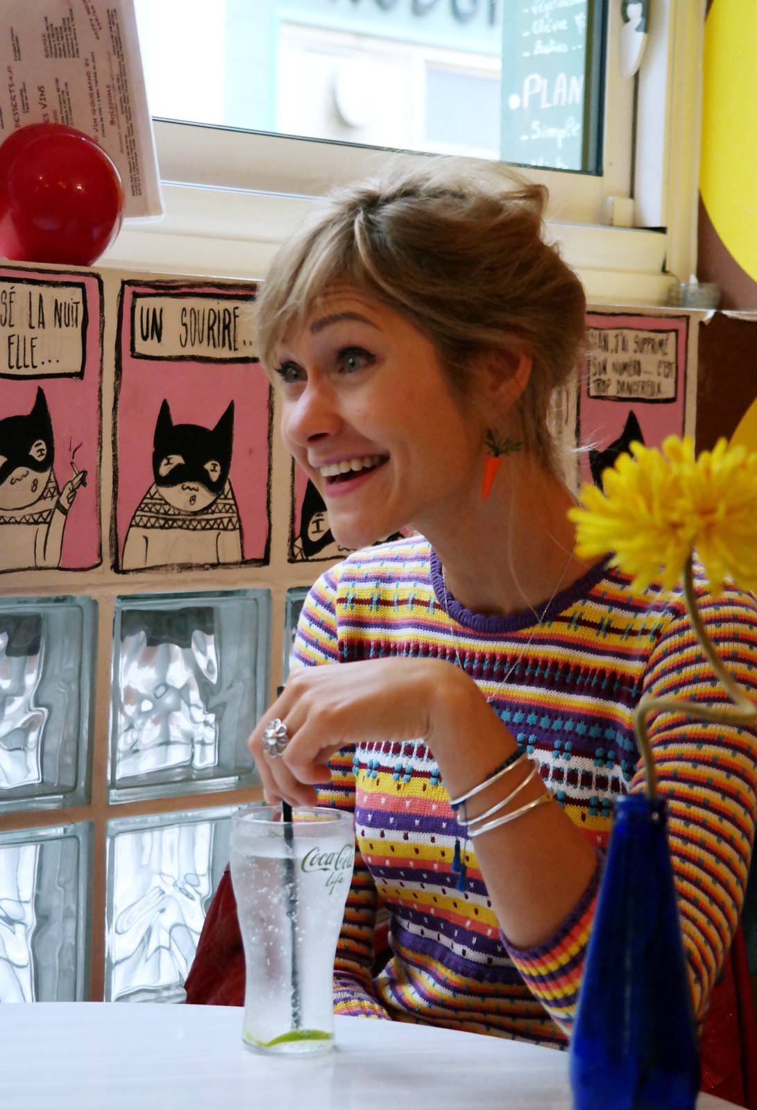 Un jeudi de septembre, dans un petit bar du XIe arrondissement de Paris. GiedRé, fidèle à elle-même, habillée d’une jolie robe tout en couleurs et des carottes aux oreilles.