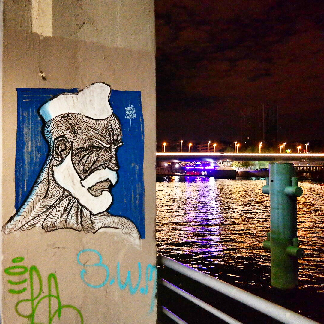 Et ce qui frappe c’est la technique utilisée. Il mixe aussi bien peinture que collage et ne cherche pas à reproduire à l’infini la même formule d’une rive à une autre, comme certains. Si bien que partir à la recherche de ces créations réserve toujours une surprise au détour d’une rue.