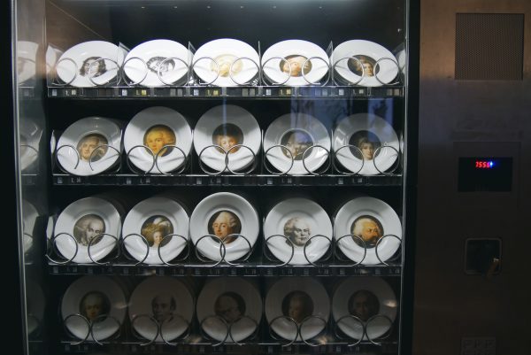 Avec Machination, Zevs confronte plusieurs degrés d’appropriation. Ce distributeur, issu du monde moderne, est couplé à la dimension historique de la Terreur révolutionnaire.