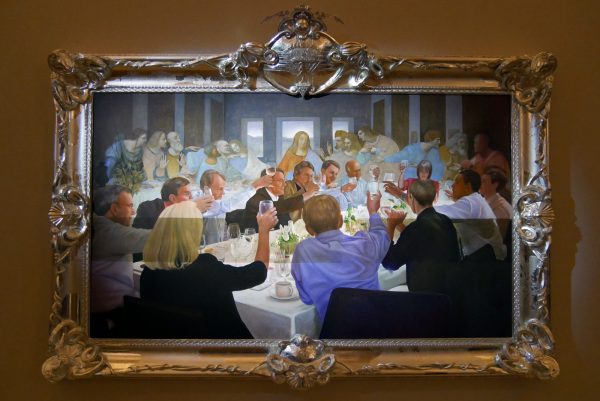 Ce dernier s’en inspire à de nombreuses reprises comme avec La Cène, détournée en repas à la Maison Blanche avec Obama et des chefs d’entreprise de la Silicon Valley dans Repas. Même le cadre en or blanc recèle des clins d’oeil logotypés de ces sociétés internationales.