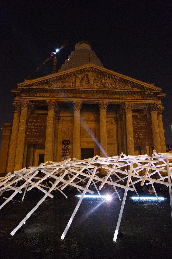 Devant le Panthéon, alors que l’installation de JR se fait plus discrète la nuit venue, une oeuvre impressionnante pourrait bien vous faire revenir au cours de la nuit, car difficile d’en croire nos yeux.