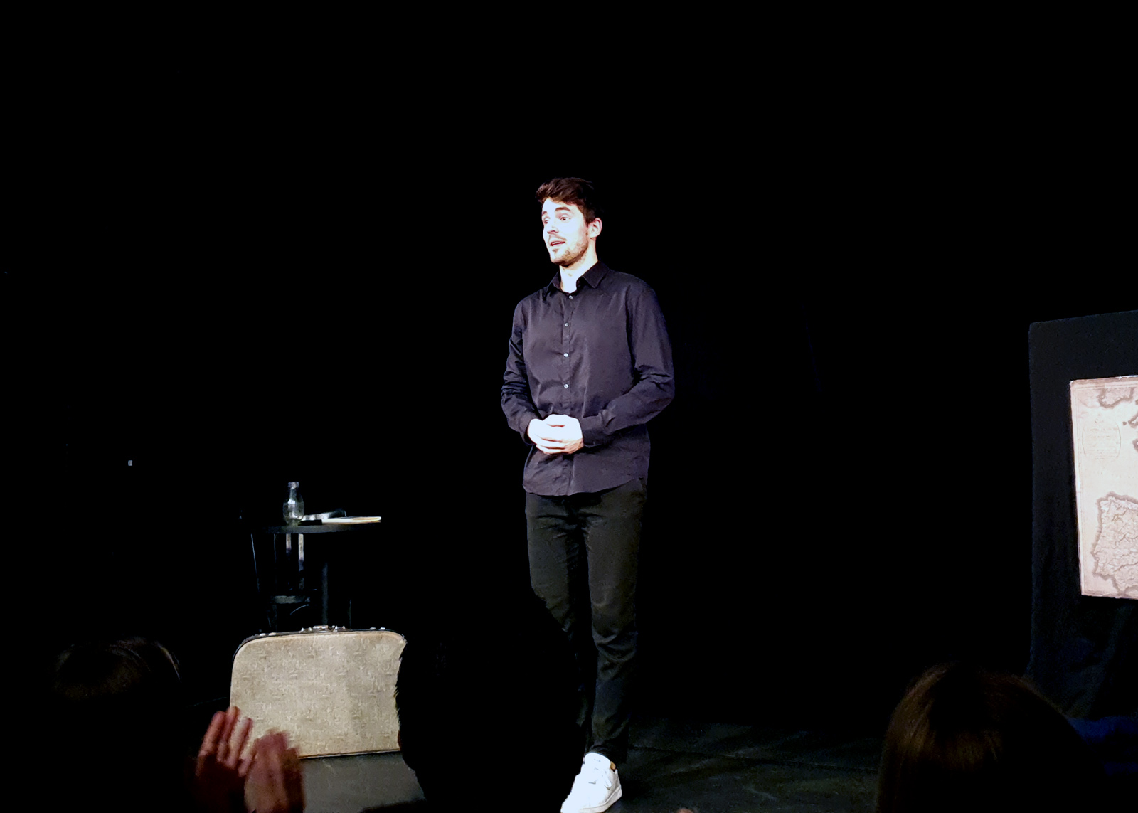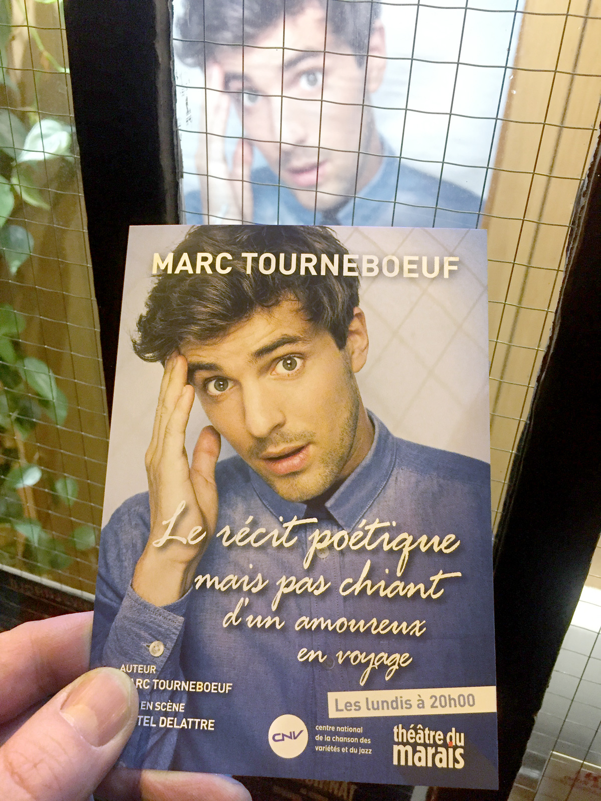 Avec son titre de spectacle à faire mourir un twittos : Le récit poétique mais pas chiant d’un amoureux en voyage, nous avions très envie de découvrir le spectacle de Marc Tourneboeuf.