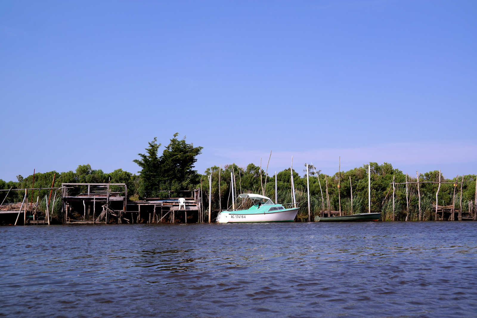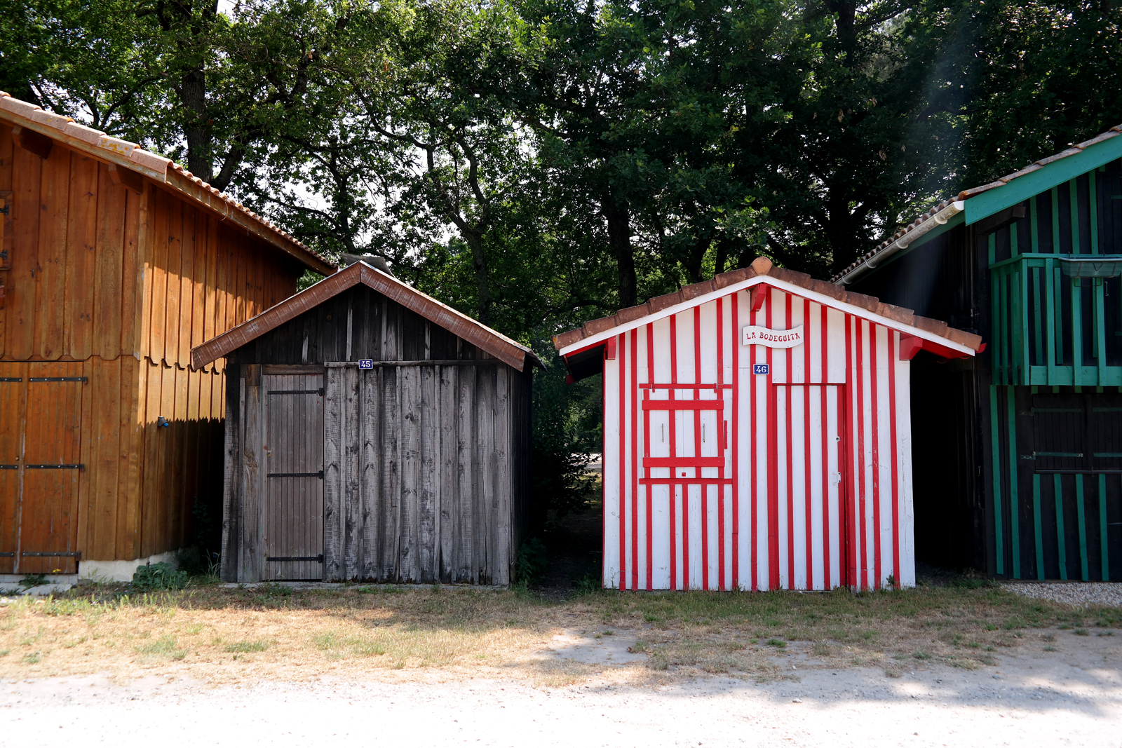 Ce vendredi ensoleillé, notre train s’arrête en gare de Facture-Biganos. Drôle de nom pour débuter notre séjour. A quelques minutes en voiture, le décor surpasse nos attentes. L’agitation estivale, somme toute raisonnable, n’est pas encore de mise. Les cabanes en bois colorées sont toutes fermées et les bateaux sont amarrés. Il y aurait un petit côté Dexter (la série US avec Michael C. Hall) : un port de plaisance agréable qui pourrait laisser penser à des activités plus obscures, la nuit tombée.