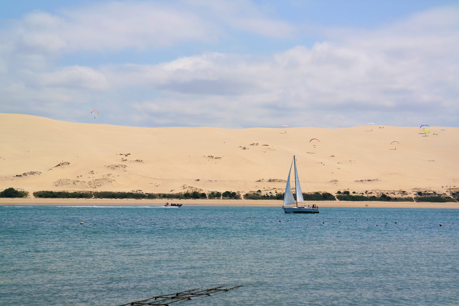 Vue sur la Dune du Pilat voilier et parapente Bassin d arcachon tourisme vacances sortie ostreiculture photo usofparis blog