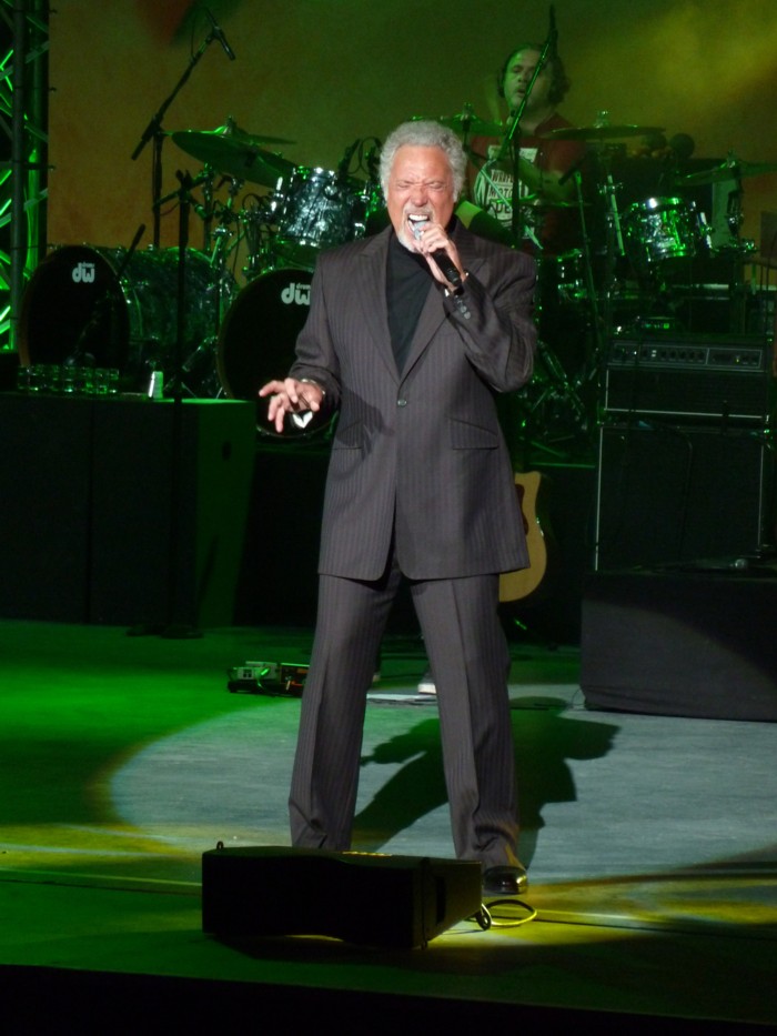 Tom Jones fait alors son entrée sur un très rock Burning Hell. On ne devine que sa silhouette. Ce soir, il sera démoniaque pour mieux nous accrocher à sa voix. Et quelle voix! Avec les années, sa passion pour le Dom Pérignon, il n’a rien perdu de ce coffre.