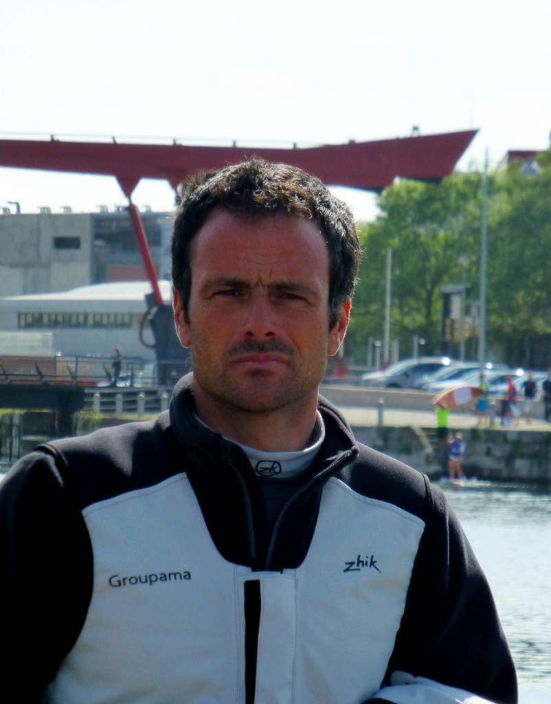 Le champion du jour et des jours suivant, Franck Cammas est sollicité dès son arrivée sur le quai par les journalistes.