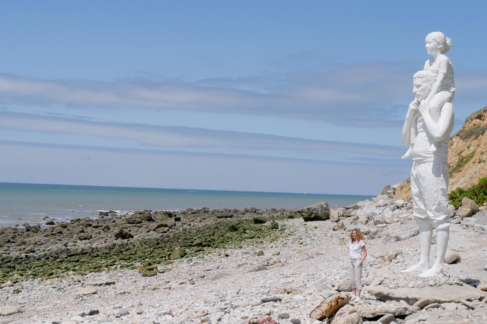 Jusqu’au bout du monde… de Fabien Mérelle se mérite. Il faut parcourir le chemin de la côte jusqu’à la petite plage de Sainte-Adresse. Et, au détour d’un virage, la première vision des 6,24 mètres de cette sculpture ne vous laissera pas sans émotion.
