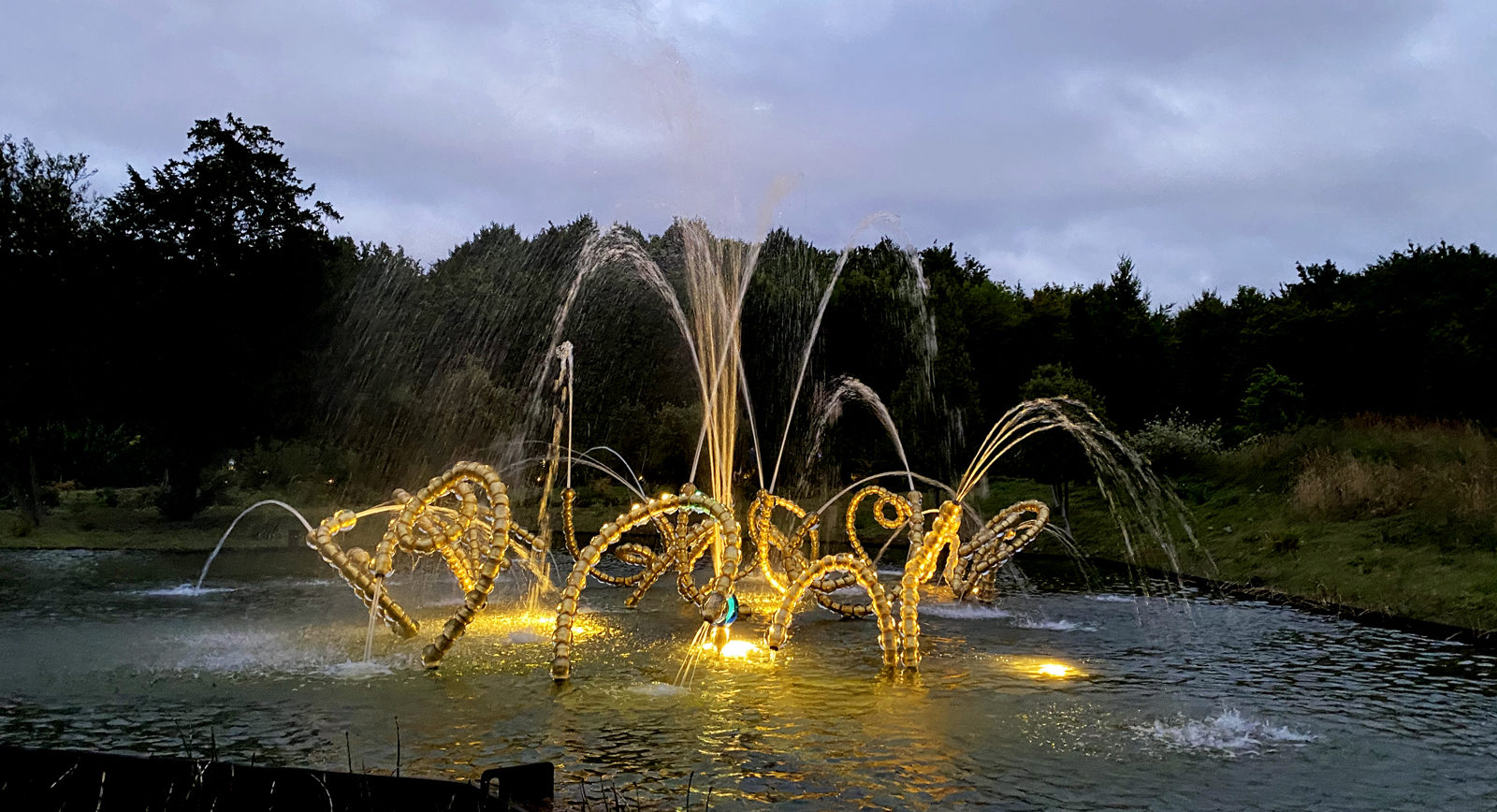 Les différents bassins et bosquets chantent aux doux sons des fontaines qui projettent leurs eaux magnifiées par la musique et les lumières installées pour cet évènement.