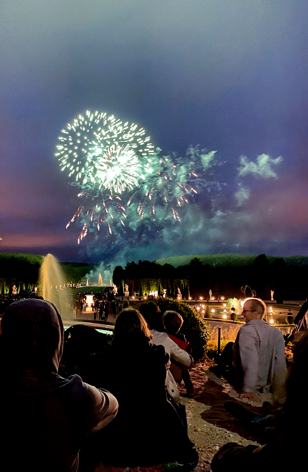À 22h50, le jardin se met à briller sous les feux d’artifice. La musique de Lully est toujours là.