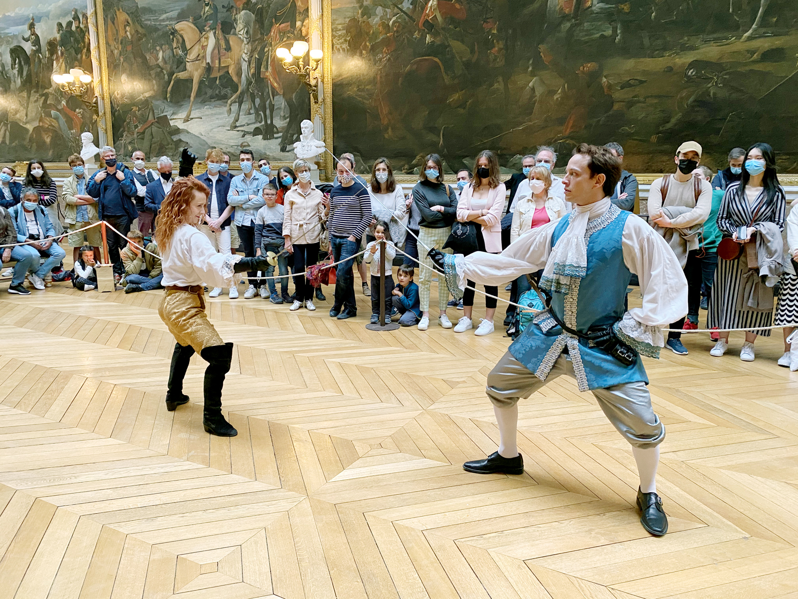 Le parcours se termine dans la Galerie des batailles pour un duel au fleuret. Prétexte pour un échange politique et féministe.